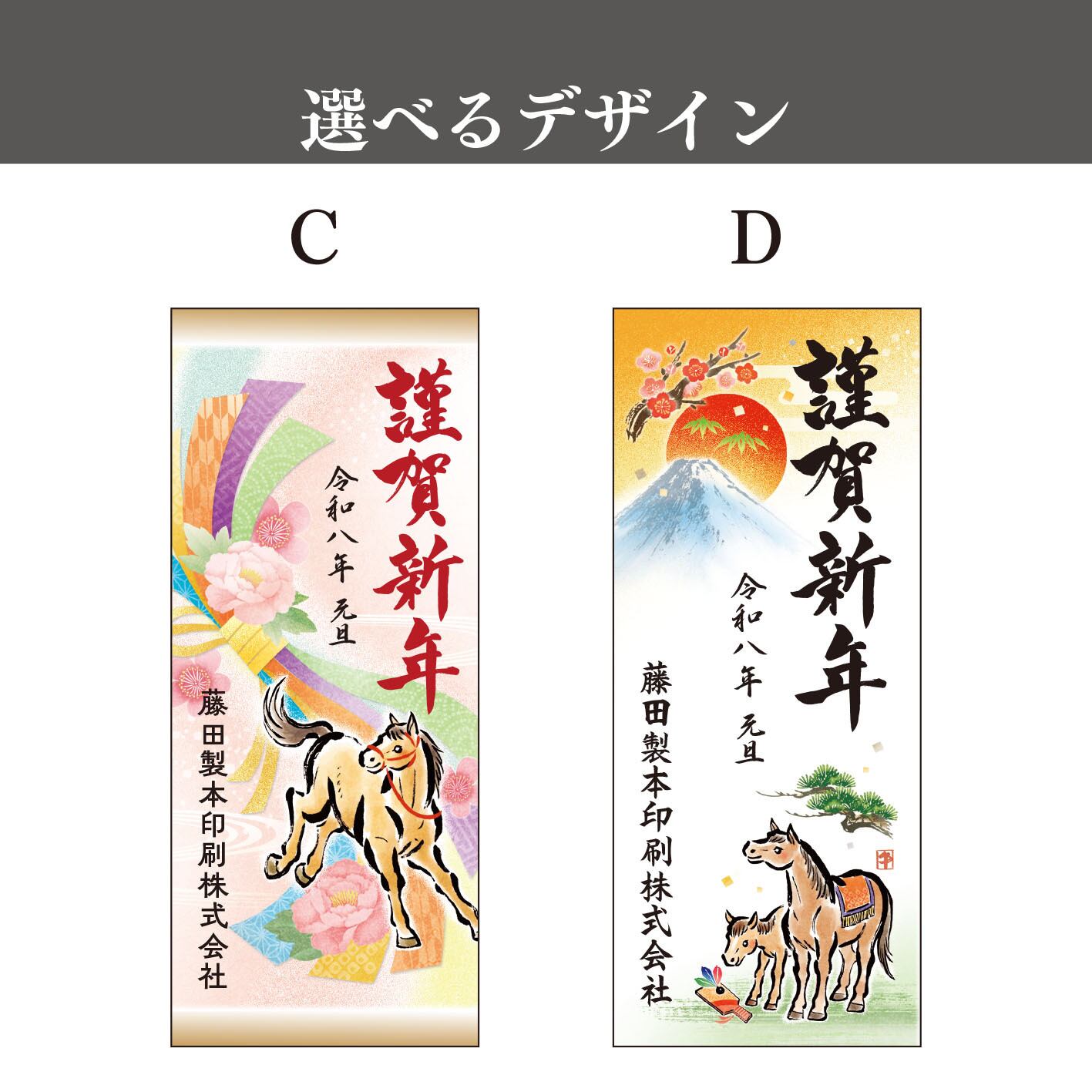 来年の干支の馬や、年賀をあしらった一枚が、店頭に福を呼び込み、お客様とのご縁を繋ぎます。